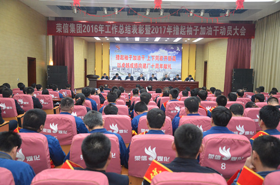 總經(jīng)理司相芳在會(huì)議上發(fā)表了以“擼起袖子加油干,上下同欲開新篇,以卓越成績(jī)向建廠十周年獻(xiàn)禮”為主題的重要講話。司總指出,2016年,取得的成績(jī)遠(yuǎn)遠(yuǎn)超過(guò)預(yù)期,大事多,難事多,喜事也多。過(guò)去的一年,我們經(jīng)歷了前所未有的嚴(yán)峻考驗(yàn),是市場(chǎng)形勢(shì)最為復(fù)雜的一年,也是大踏步轉(zhuǎn)型升級(jí)的一年,更是承受內(nèi)與外壓抑磨煉的一年。陽(yáng)光總在風(fēng)雨后,風(fēng)雨過(guò)后有彩虹。全年主要經(jīng)濟(jì)指標(biāo)持續(xù)向好,仍保持同行業(yè)最好水平。以榮信煤化為核心,以恒信科技、奔月新能源和恒信航運(yùn)為成員的山東榮信集團(tuán)成立。碼頭投用見效,多元化經(jīng)營(yíng)效益新增。轉(zhuǎn)型升級(jí)成效凸顯,產(chǎn)業(yè)鏈條延伸,產(chǎn)品檔次提升。與魯南煤化工研究院簽署戰(zhàn)略合作協(xié)議,科技創(chuàng)新平臺(tái)得以拓展。新獲得第五屆濟(jì)寧市市長(zhǎng)質(zhì)量獎(jiǎng)、“富民興魯勞動(dòng)獎(jiǎng)”、“濟(jì)寧市十佳智能制造示范企業(yè)”、“山東煤化工行業(yè)十強(qiáng)企業(yè)”等榮譽(yù)?!叭似?、產(chǎn)品、企品”三品合一的榮信品牌效應(yīng)凸顯,黨委政府、股東單位、社會(huì)各界、廣大客戶、合作伙伴對(duì)榮信賦予了新的期待。成績(jī)的取得,也離不開黨委政府、股東單位及沈主席、龔總裁的正確領(lǐng)導(dǎo),歸功于全體干部員工的拼搏奮斗,也傾注著員工家屬、廣大客戶、合作伙伴和社會(huì)各界的關(guān)心支持。